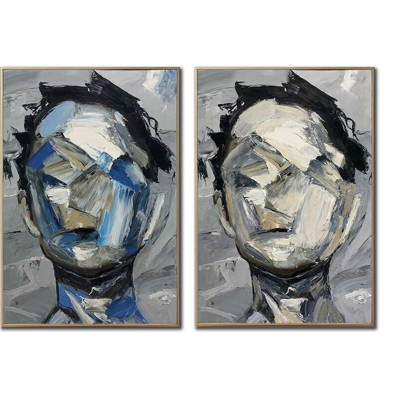Abstract Women Faces Painting on Canvas Neutral Wall Art Diptych Art Personalized Painting Knife Palette Artwork for Aesthetic Room Decor