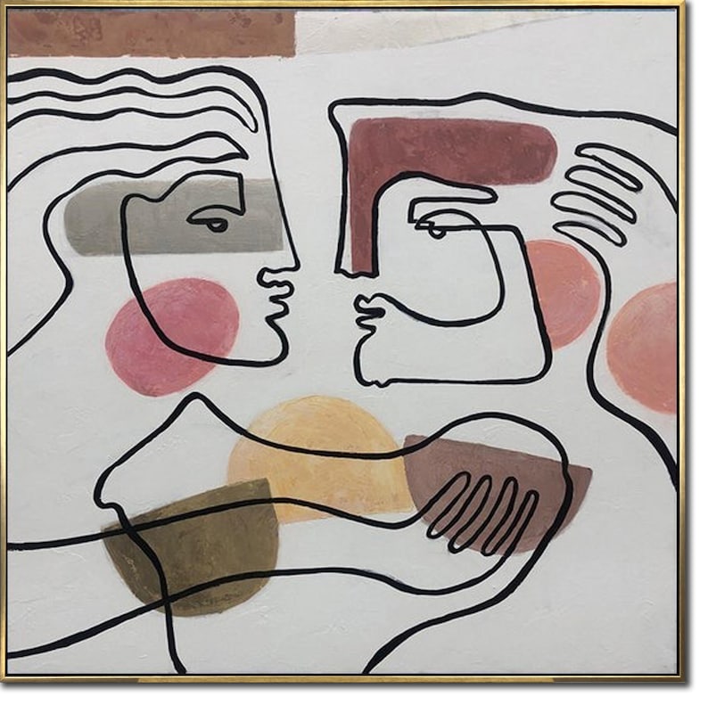 Large 60x60" Acrylic Abstract Painting Kissing Couple Painting Romantic Original Painting Love Couple Modern Art Painting for Living Room