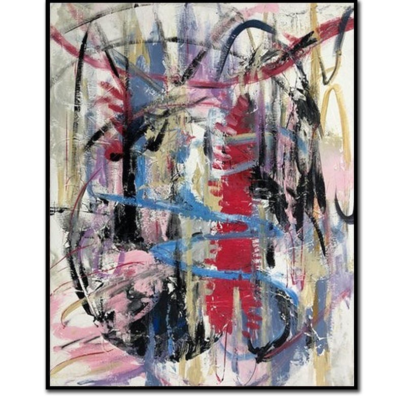 Abstract Colorful Lines Oil Painting Original Bright Shapes Artwork Modern Wall Art Decor for Bedroom