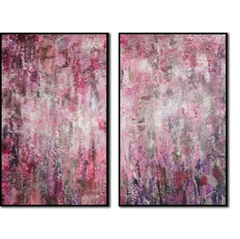 Abstract Colorful Set Of 2 Custom Oil Paintings On Canvas Modern Pink Wall Art Decor for Home PINK NOISE