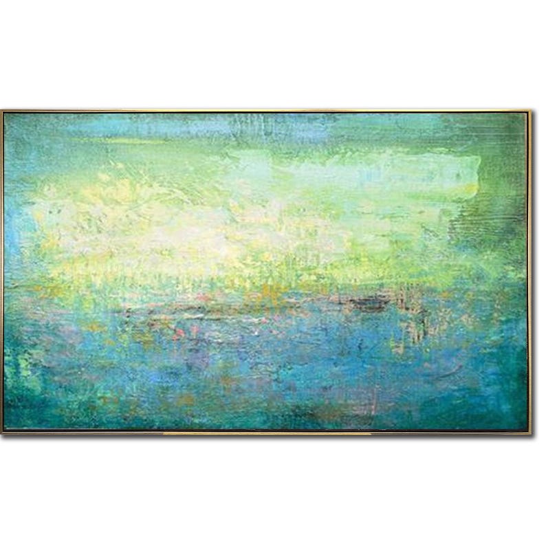 Abstract Landscape Painting, Green and Blue Wall Art, Modern Nature-Inspired Canvas, Hand-Painted Large Artwork for Home Decor