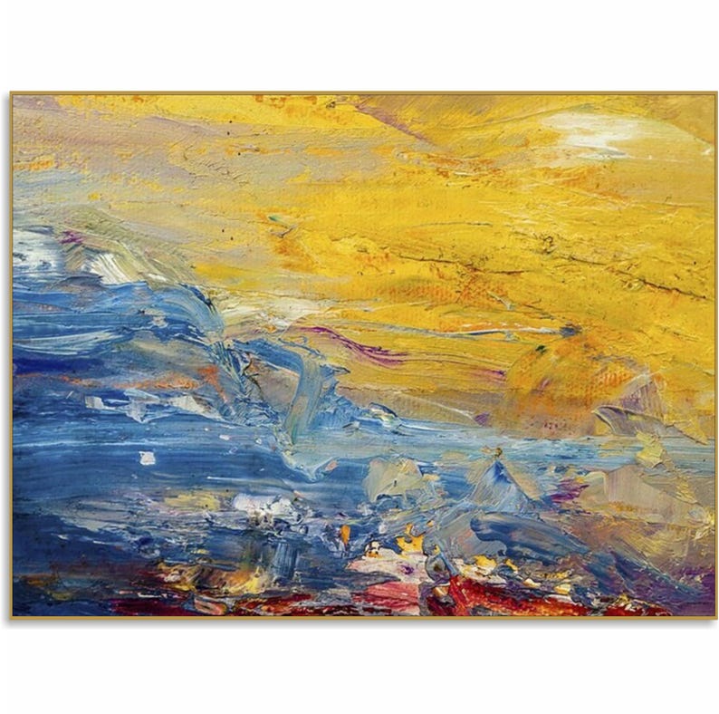 Textured Abstract Landscape Painting - Vibrant Blue and Yellow Wall Art - Original Handmade Artwork