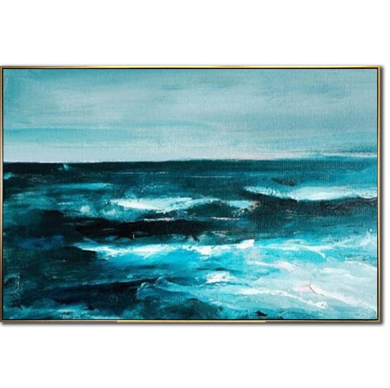 Abstract Ocean Painting on Canvas - Large Blue Sea Wall Art - Modern Coastal Decor for Living Room or Office