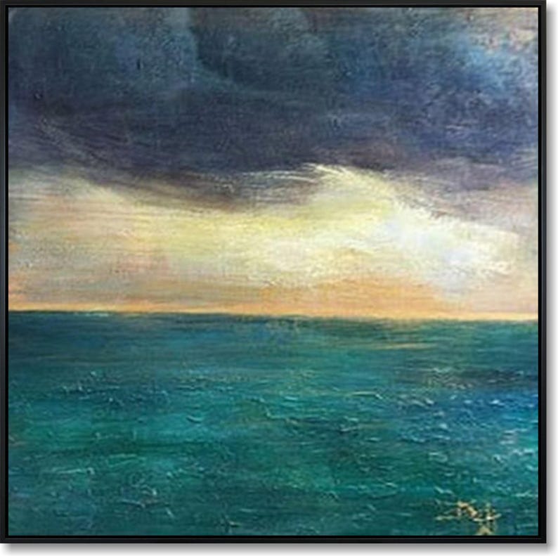 Abstract Sea And Sky Wall Art Waters Tranquility Art Ocean Art Framed Blue and Teal Painting Living Room Beach Decor