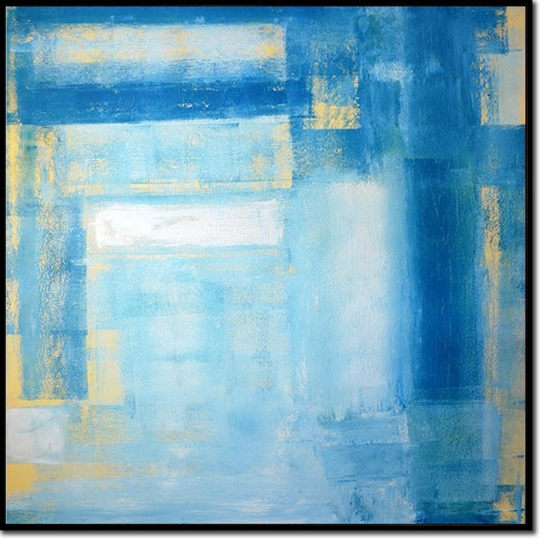 Blue Abstract Painting Blue Modern Wall Art Handmade Artwork Apartment Wall Art Handmade Gift Large Wall Art Framed Art Living Room Decor