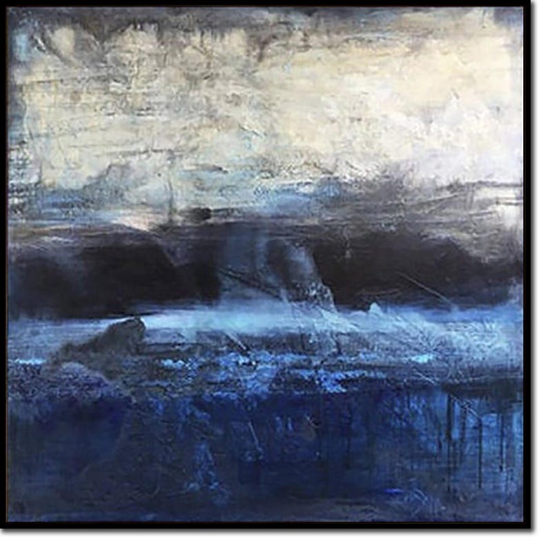 Abstract Dark Blue Ocean Painting Saltwater Art Waves Painting Ocean Art Framed Moody Colors Painting Rich Textured Art