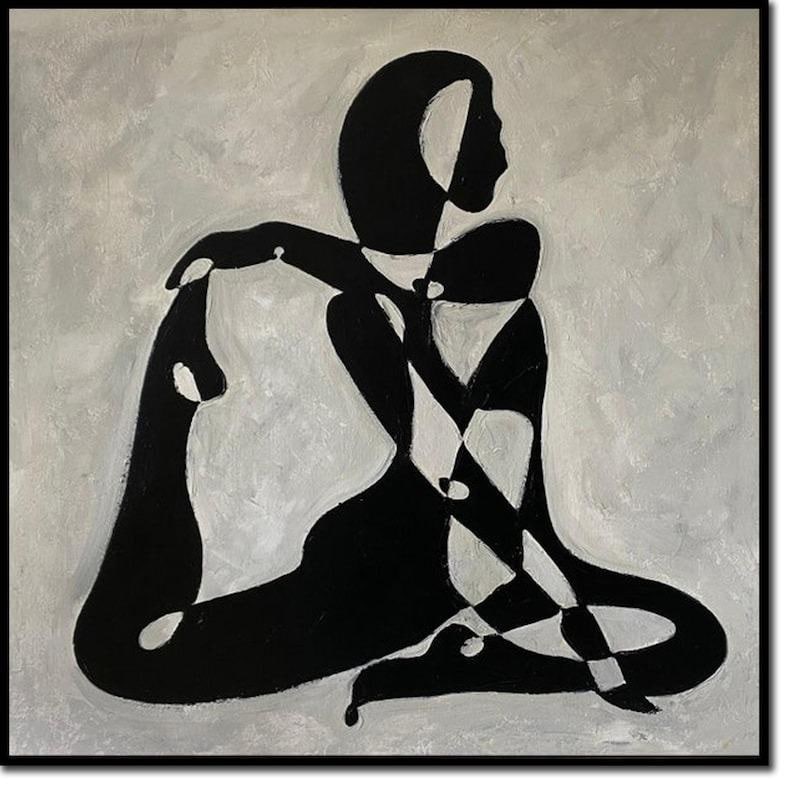 Abstract Figurative Black and White Paintings On Canvas Modern Elegant Female Figurative Abstraction Art Modern Minimalist Art Wall Decor