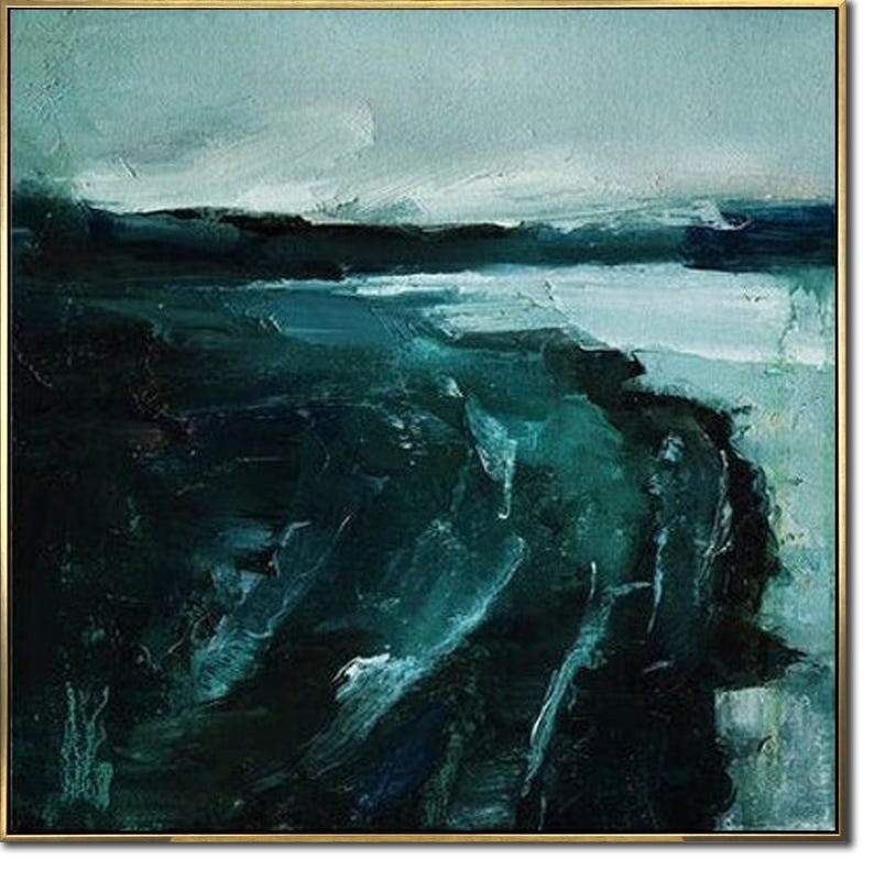 Abstract Seascape Painting, Modern Blue Ocean Art, Minimalist Coastal Wall Art, Hand-Painted Large Canvas for Home Decor