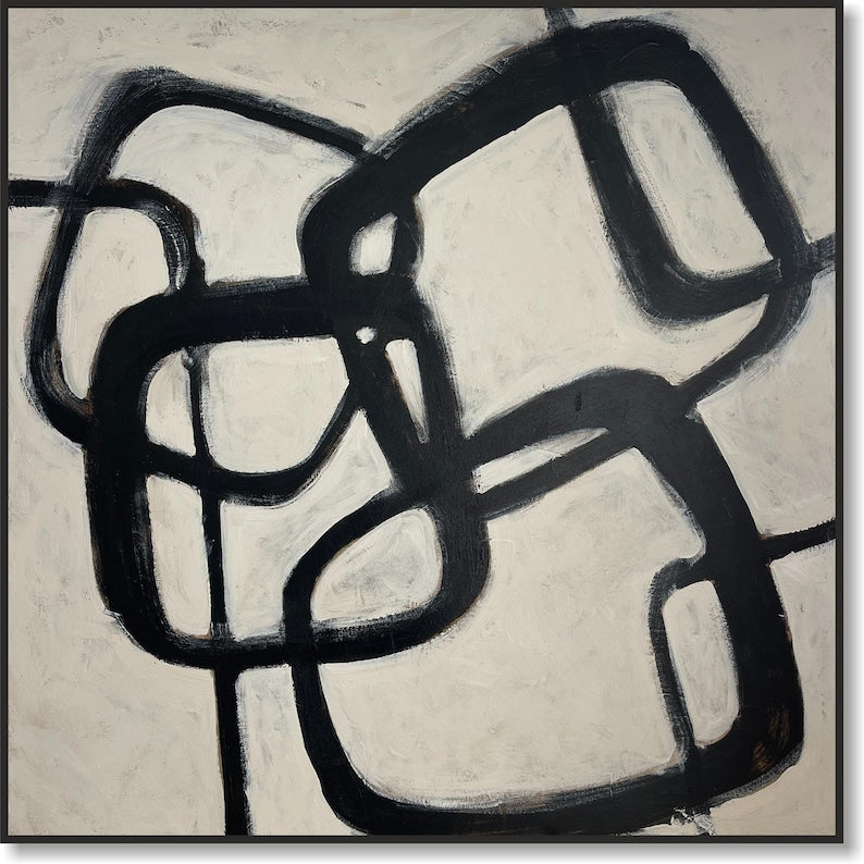Abstract Wabi-Sabi Art Black and White Japandi Square with Rounded Edges Paintings Modern Textured Minimalist Art Custom Oil Wall Decor