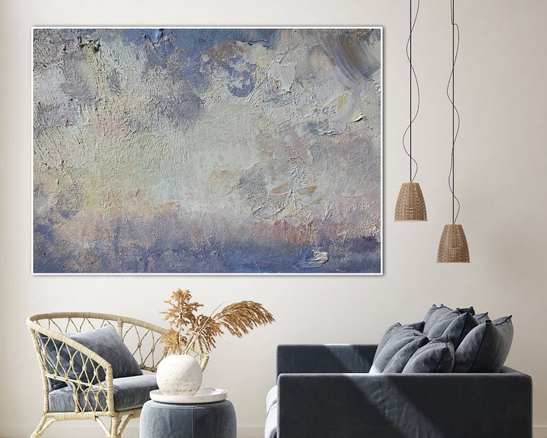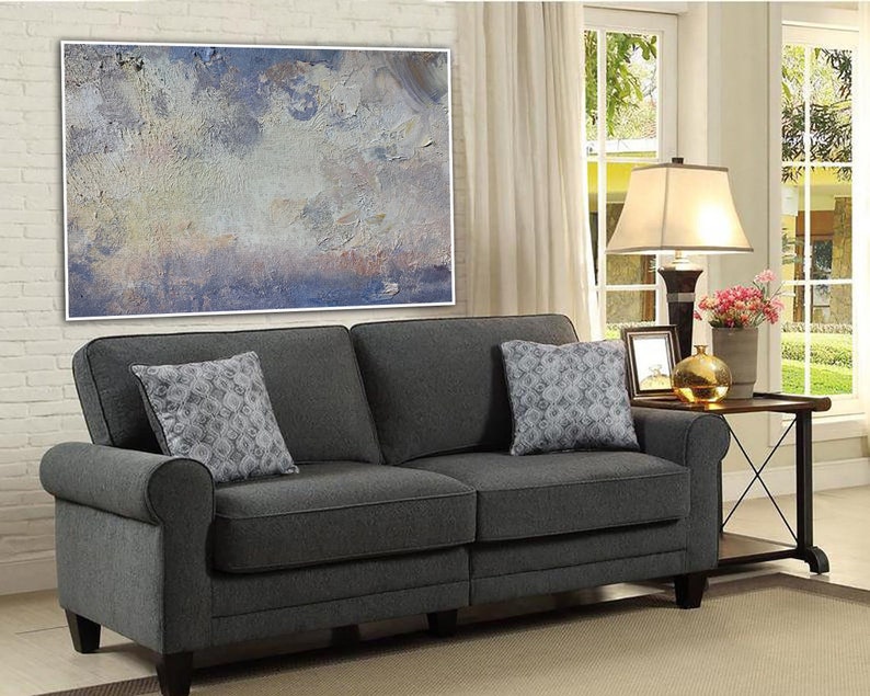 Stor tekstureret vægkunst abstrakt maleri blå og grå moderne vægkunst paletkniv oliemaleri stueindretning indflyttergave