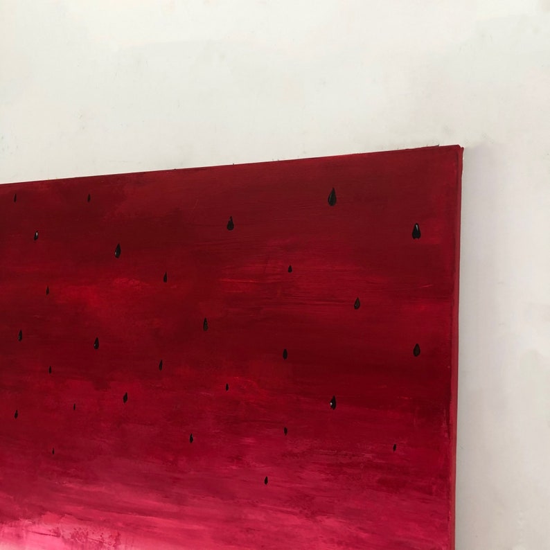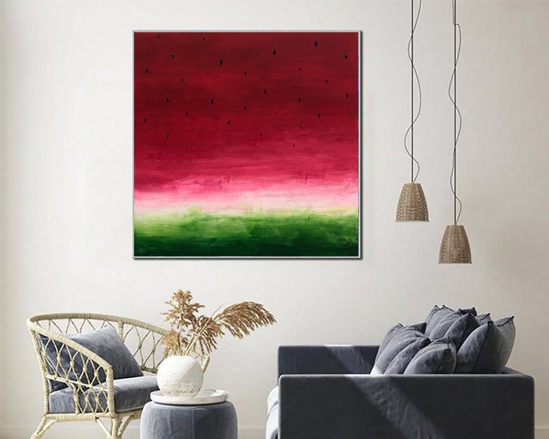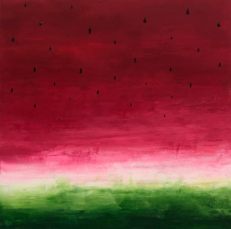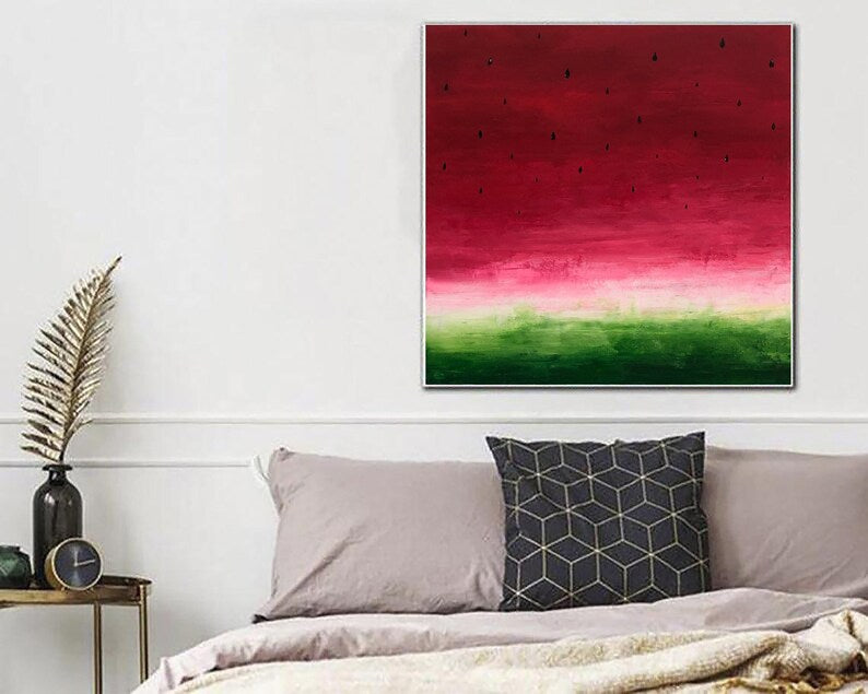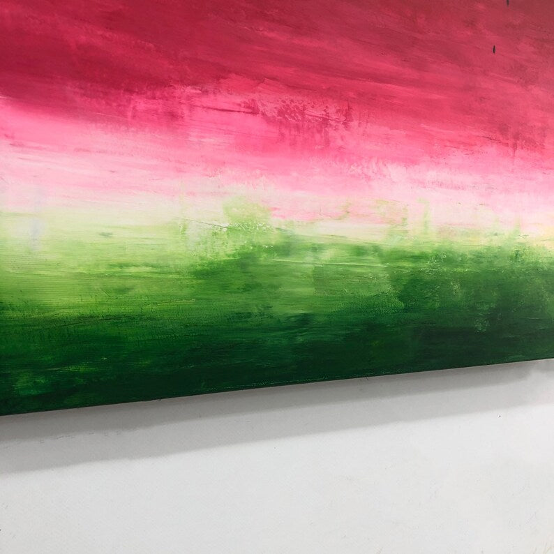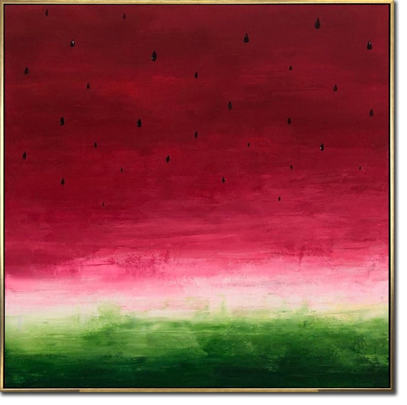 Vandmelon, Originalmaleri, Abstrakt maleri, Ekspressionistisk maleri, Vandmelonmaleri, Stilleben, Farverig, Vandmelon rødgrøn