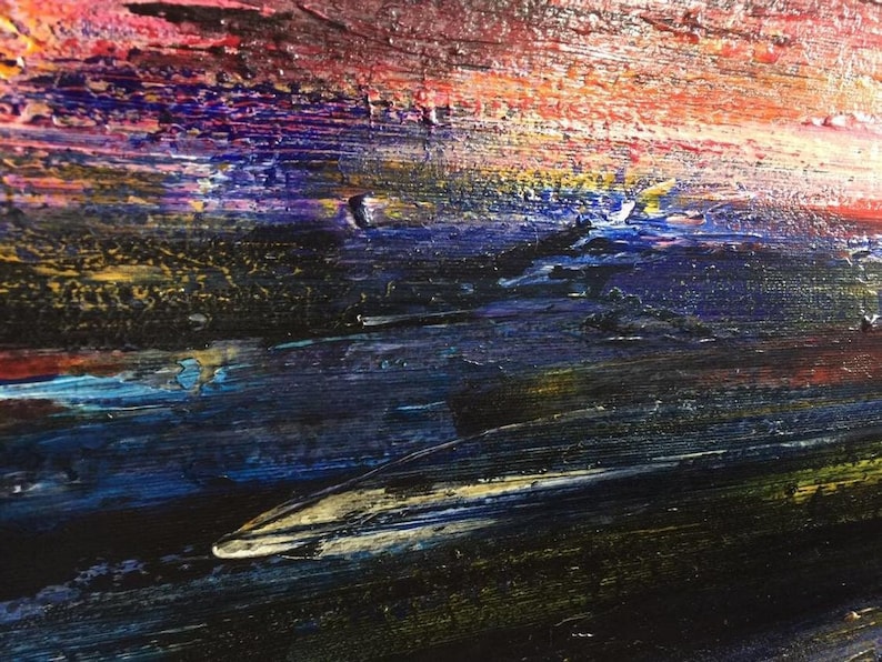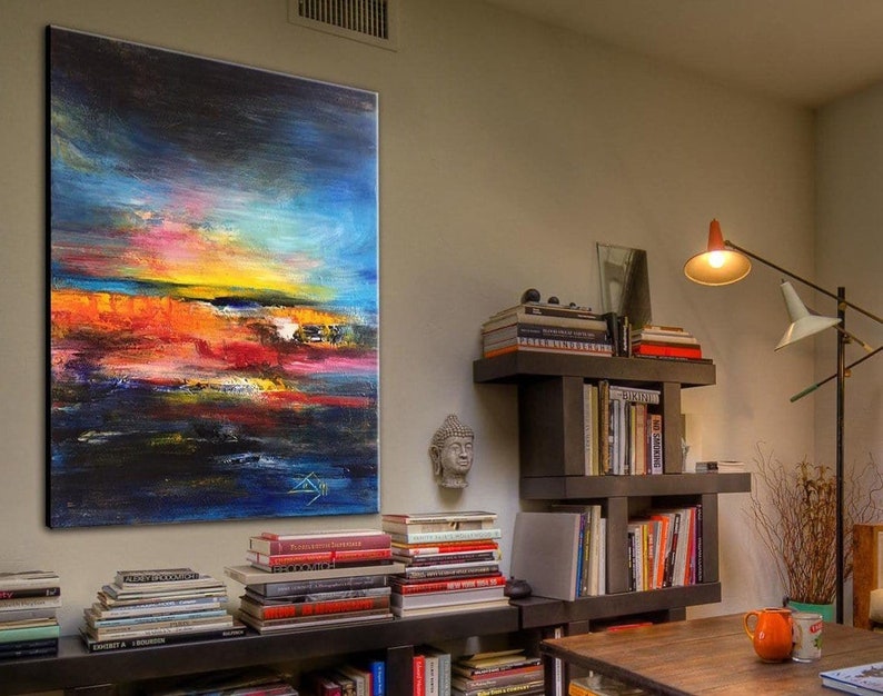 Abstract Painting Colorful Painting Sunset Painting Canvas Blue Painting Modern Textured Sunset Painting for Living Room COLORFUL SUNSET