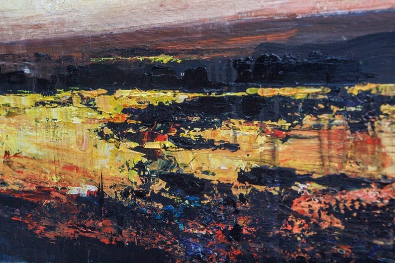 Abstract Sunset Painting Blue Oil Canvas Original Pink Painting Gold Leaf Artwork Living Room Art Housewarming Gift Office Wall Decor