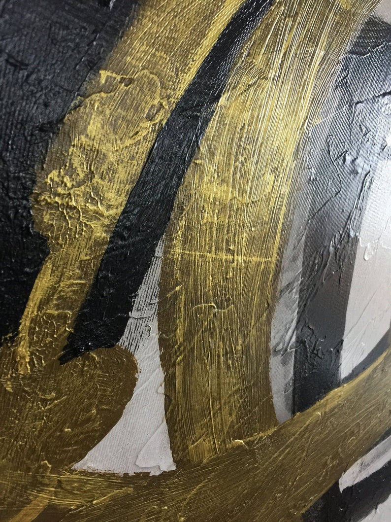Gold Abstract Painting, Modern Black and White Wall Art, Hand-Painted Minimalist Canvas, Contemporary Geometric Art for Home Decor