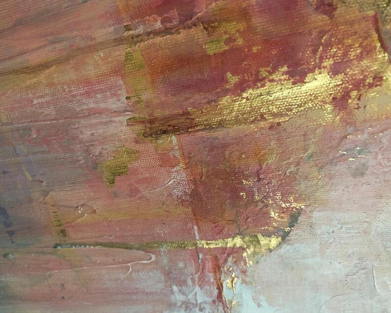 Large Abstract Lanscape Paintings, Pink Sunset Painting Modern Textured Art Gold Leaf Original Abstract FIne Art for Living Room