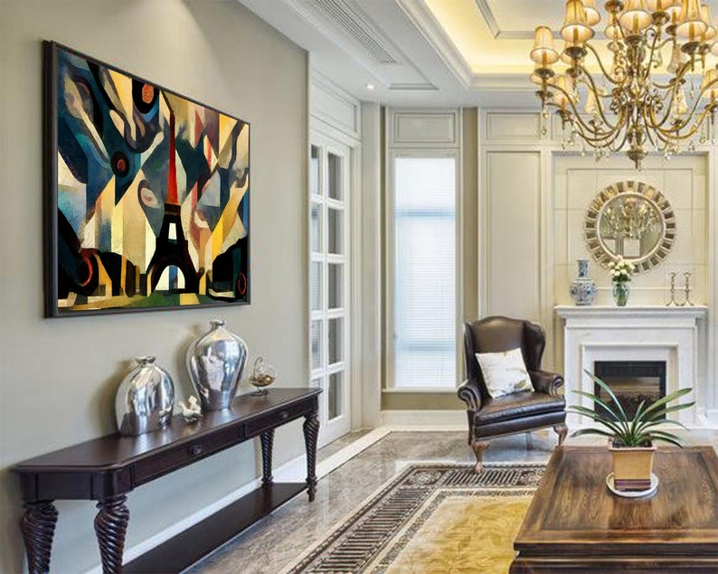 Paris Painting Abstract Eiffel Tower Painting Geometric Parisian Art Modern Style Art Statement Wall Art Office Wall Decor Housewarming Gift